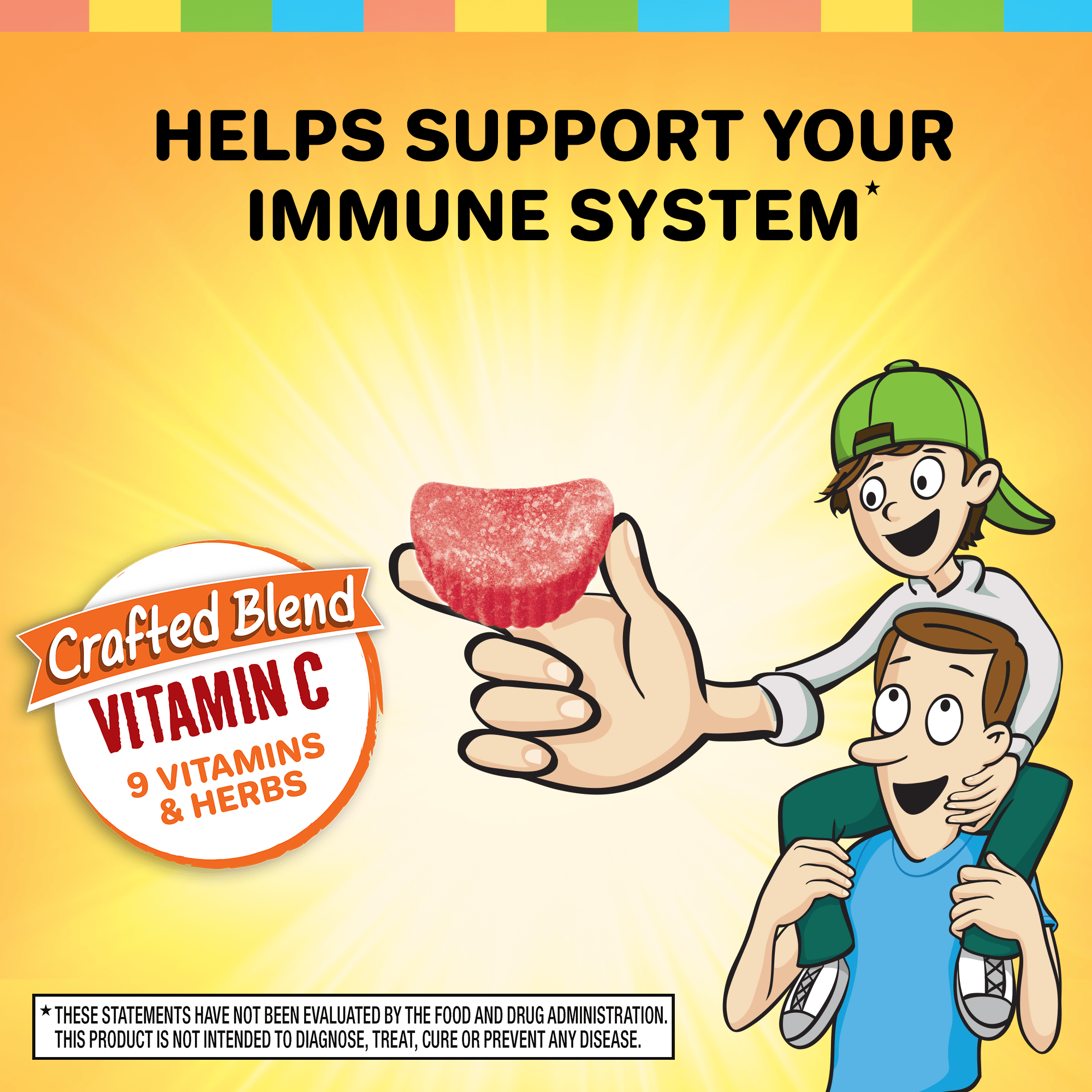 Airborne Immune Support Gummies for Kids have a crafted blend of Vitamin C and 9 other vitamins. minerals and herbs that helps support the immune system in a delicious. and easy-to-take gummy form kids love*. No longer do you need to fight with your kids to take them. Each serving (2 gummies) provides 500 mg of Vitamin C.
