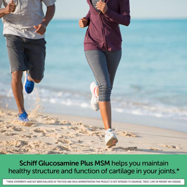Schiff Glucosamine Plus MSM helps lubricate and protect joints by helping you maintain healthy structure and function of cartilage in your joints.* It contains Glucosamine Hydrochloride (HCl) which has a high potency of active Glucosamine. Glucosamine HCl is about 83% Glucosamine while some brands use Glucosamine Sulfate that is only about 65% Glucosamine. It also contains MSM (methylsulfonylmethane) and hyaluronic acid (HA) to help promote overall joint mobility so that you can move with ease. The recommended serving size is 3 softgels daily. Guaranteed for purity. freshness and labeled potency.